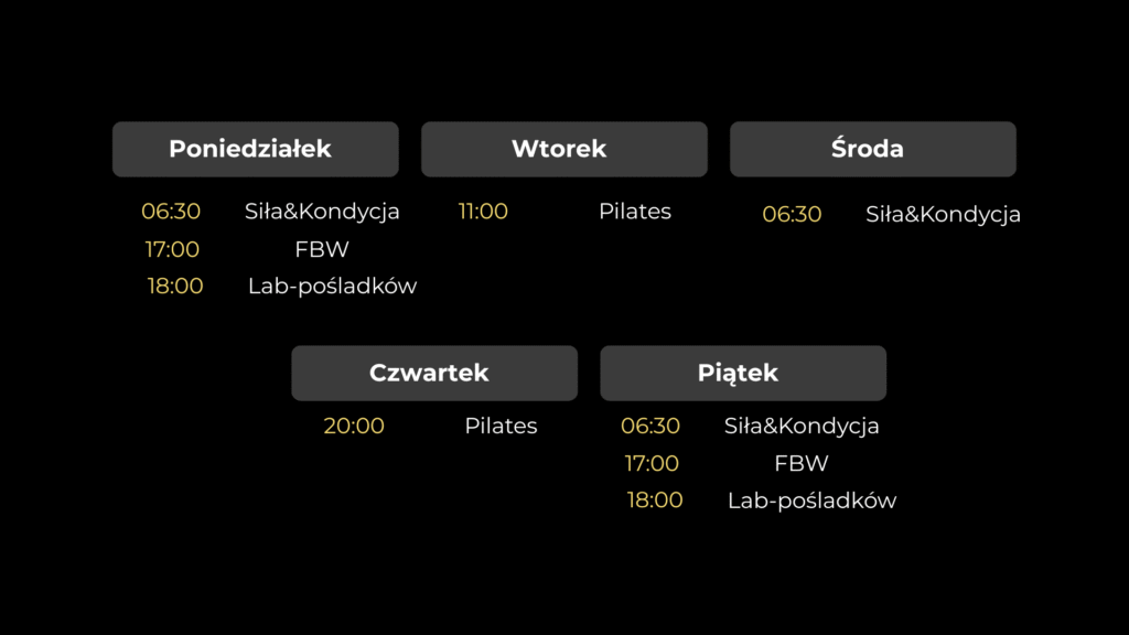 - Wzmocnienia core, poprawy balansu i stabilizacji